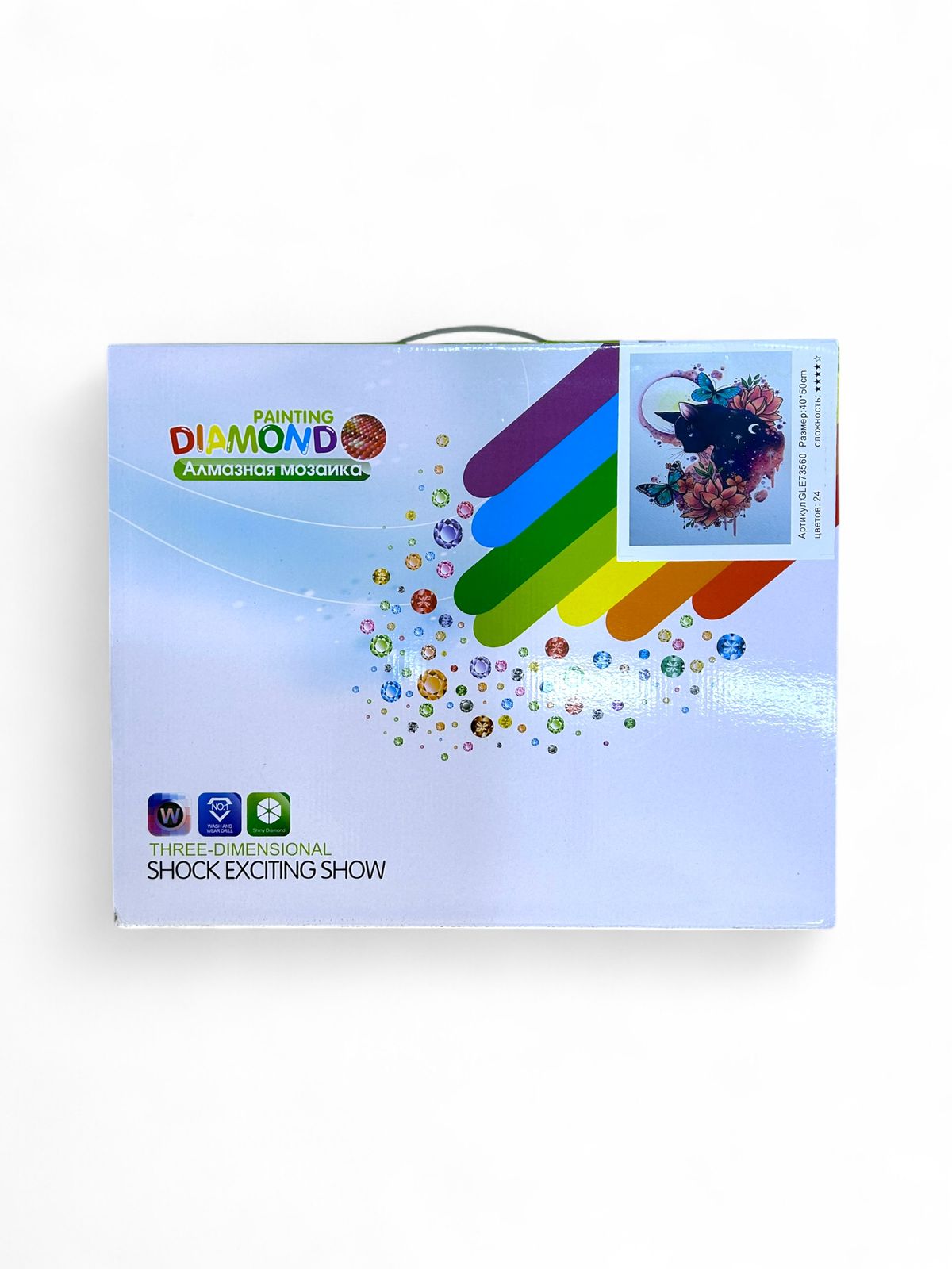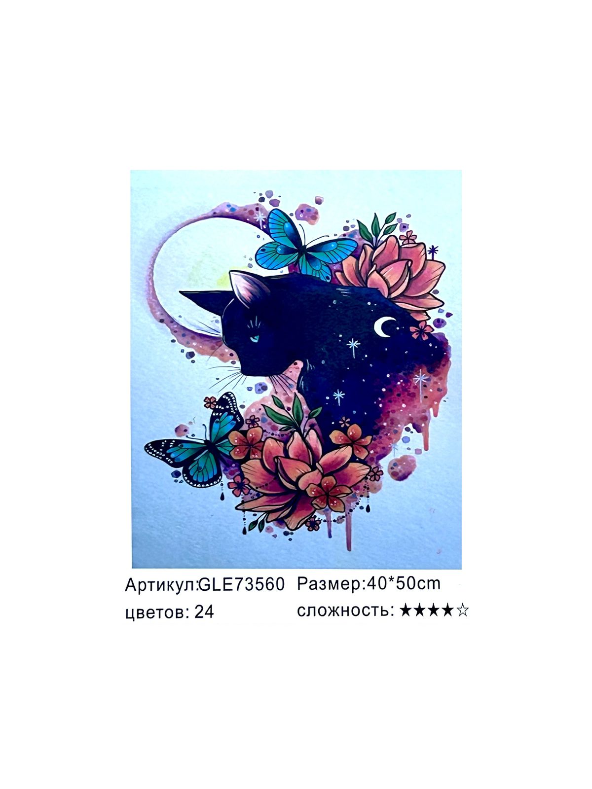Алмазная мозайка 40*50см арт.gle73560 Лунный кот и бабочки с цветами