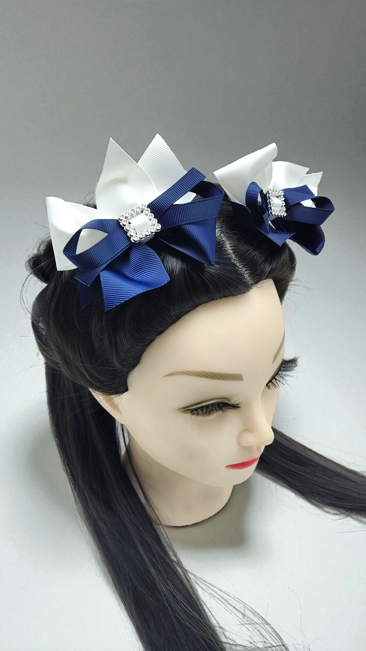 Бантики на заколке уп 2шт арт.3715-1 бело-синие
