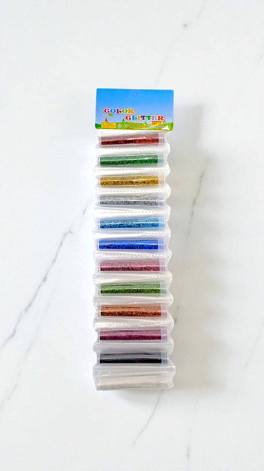 Блёстки для декора представляют собой набор из 12 разноцветных колбочек мелких блёсток.