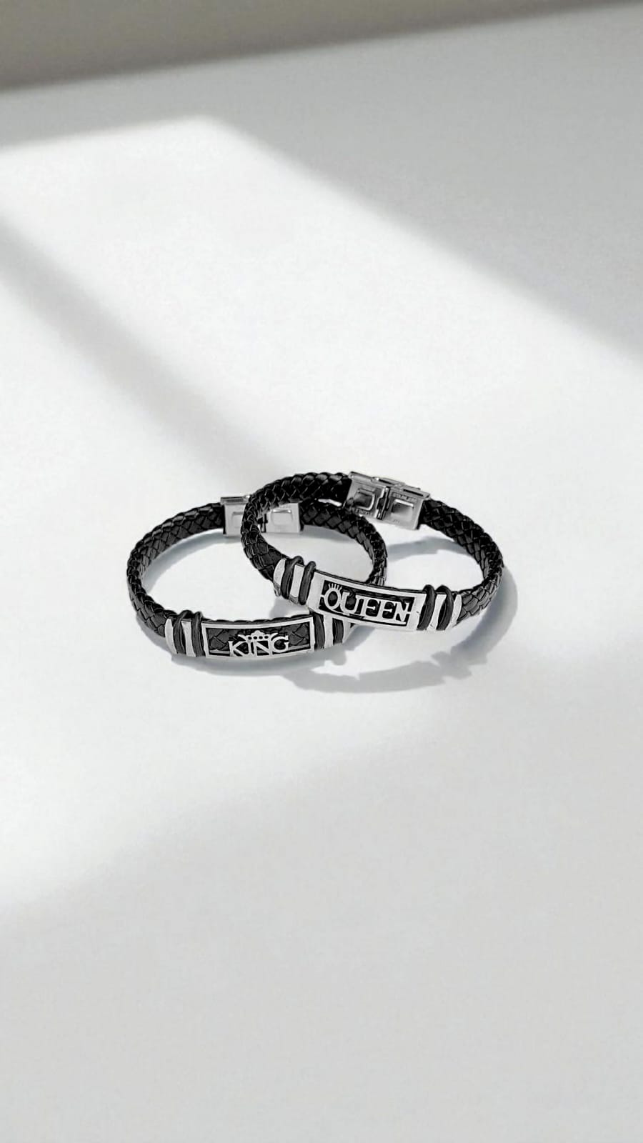Браслеты парные кожаные King/Queen арт.tr1925 серебро