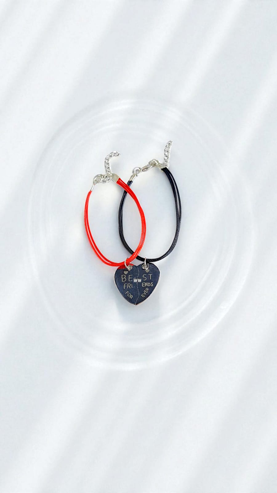Браслеты парные на шнурке с магнитом сердце Best Friends Forever арт.tr1831 серебро