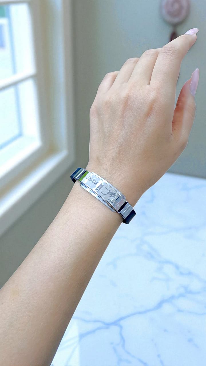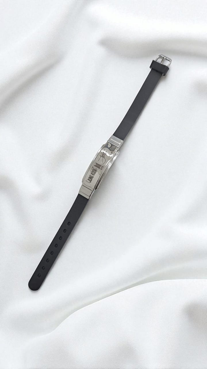 Браслет силиконовый регулируемый с металлической вставкой автограф «BTS-JK» арт.tr2147 серебро