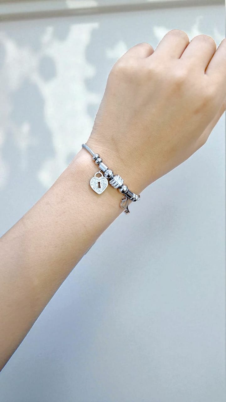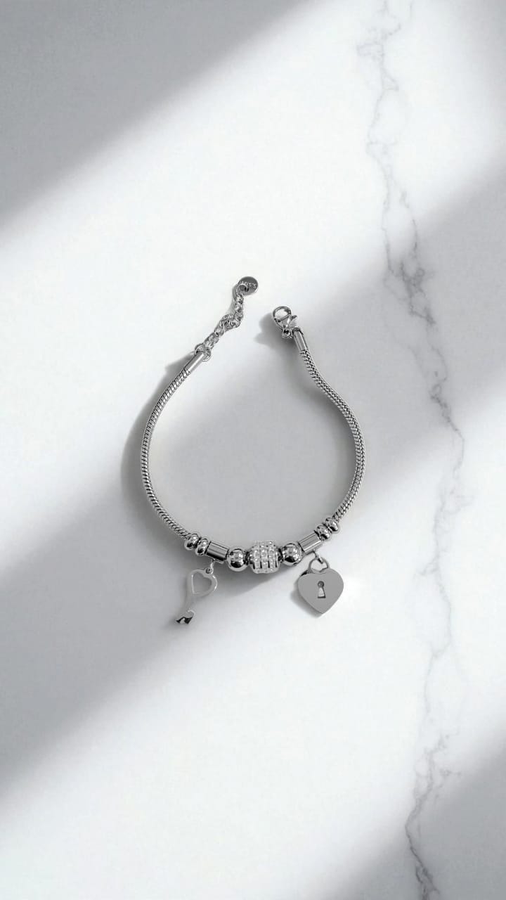 Браслет титан под Pandora с сердцем и ключом арт.tr1987 серебро