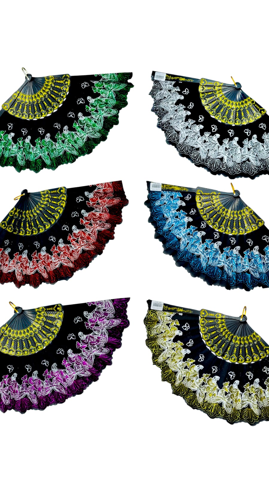 Веер черный с узорами 22см арт.250510-7 ассорти
