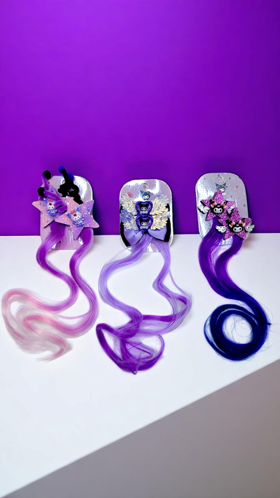 Цветные пряди волос — тренд последних лет. В наборе 2 пряди на заколке Куроми. Наборы прядей популярны ,как у взрослой аудитории,так и у детей — именно их часто приобретают для фотосессий и на лето, чтобы подчеркнуть образ, цвет платья. Искусственные пряди канекалон легко и надежно крепятся к основанию ваших волос с помощью заколки, не причиняя им вреда, поэтому могут использоваться даже юными модницами. Это домашнее наращивание волос за 3 минуты. Закрепить пряди проще простого — После закрепления сделайте любую прическу — косы, хвосты, пучки, локоны.