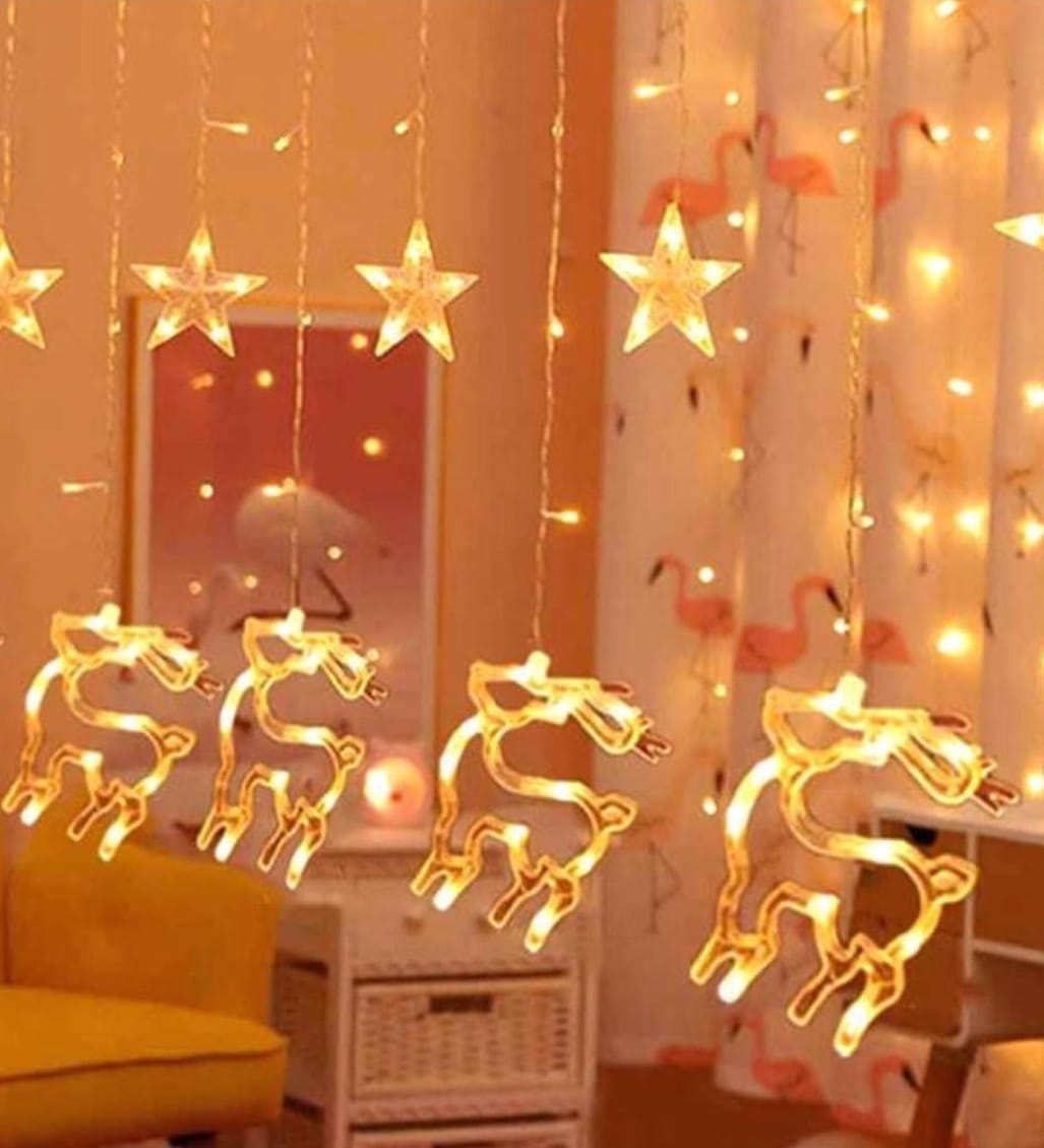 Гирлянда штора снежинки и звезды от сети — стильный элемент декора, который создает ощущение праздника, подарит новогоднее настроение .Интерьер заиграет новыми красками и будет напоминать о торжестве, которое ждут и взрослые, и дети в начале зимы.