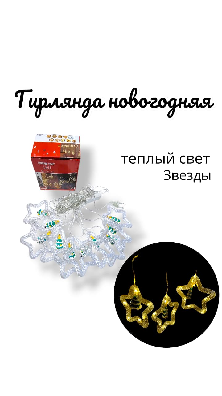 Гирлянда новогодняя теплый свет Звезды 4500тг