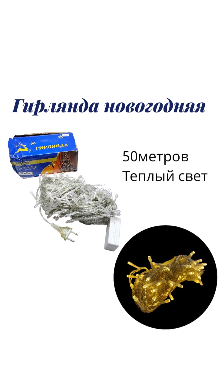 Гирлянда новогодняя 50м теплый свет 5000тг