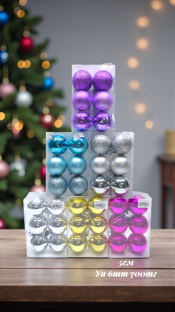 Набор ёлочных украшений — это идеальный аксессуар для создания праздничной атмосферы в вашем доме. Каждый шар в этом наборе имеет уникальный декоративный дизайн, который легко впишется в атмосферу зимнего праздника.