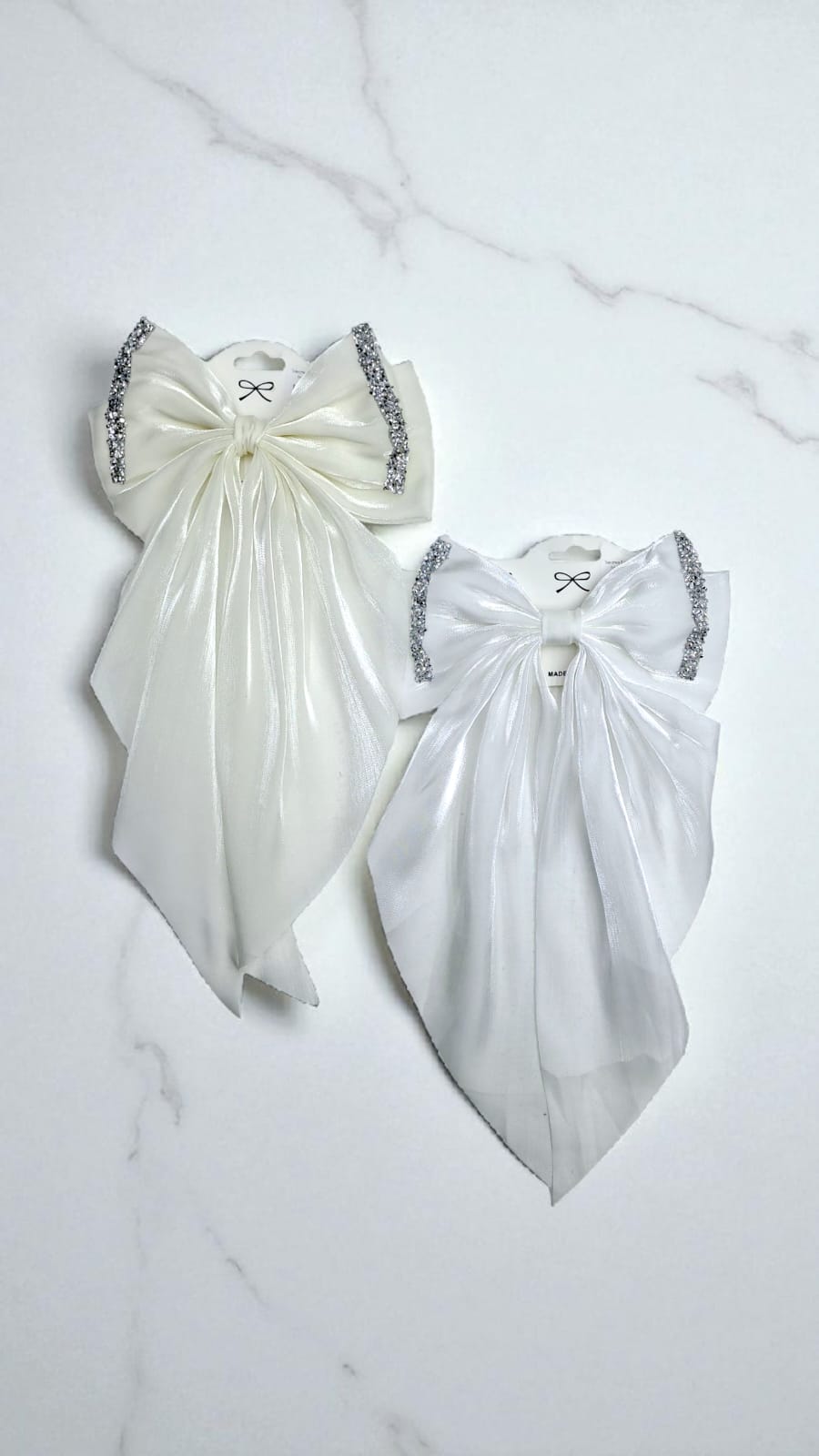 Заколка Бант с ажурными лентами арт.3715-3 бело-синий