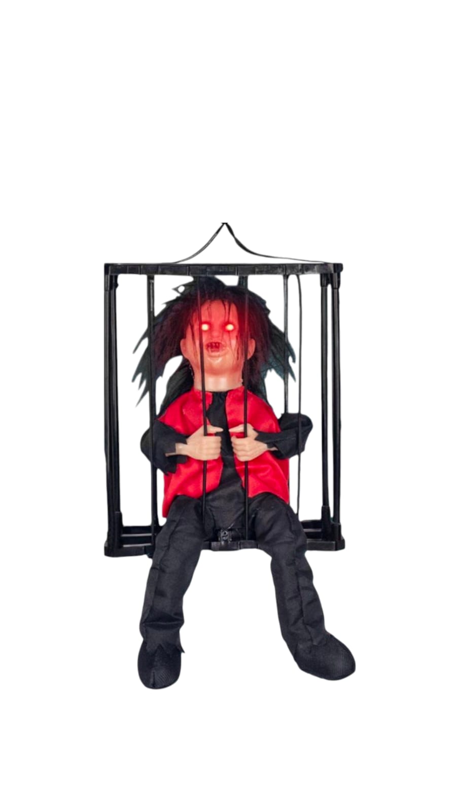 Вампиры страшные, и в то же время забавные и смешные. Отлично подойдут для украшения на Хэллоуин или веселой игры. Удобный подвес позволяет легко закрепить приведение в удобном месте. Сувенирная игрушка, которая великолепно подходит для розыгрыша коллег в офисе или привлечения внимания посетителей в общественных заведениях. Игрушка реагирует на движение перед ним и страшно выкрикивает по-английски различные пугалки. При этом глаза злобно горят красным цветом, а сам он просовывает голову через прутья клетки, пытаясь вырваться.