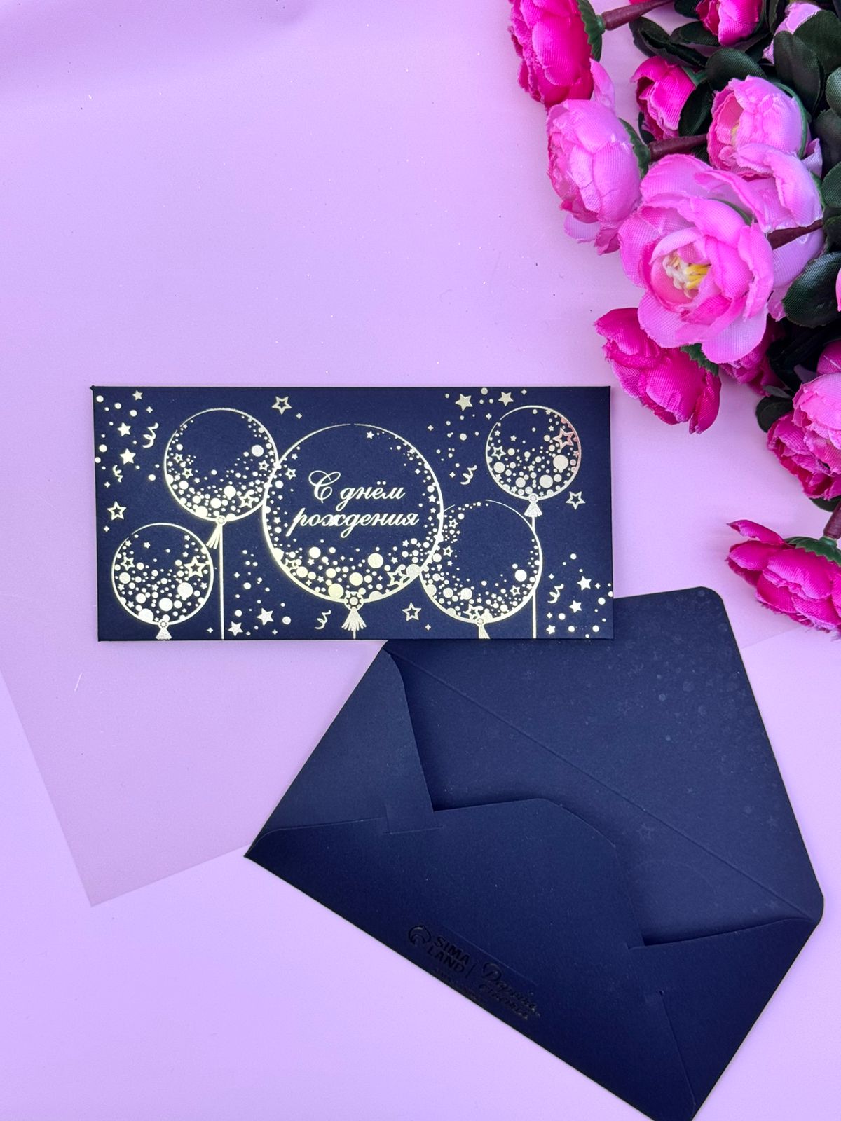 Конверт для денег черный HAPPY BIRTHDAY арт.10897322