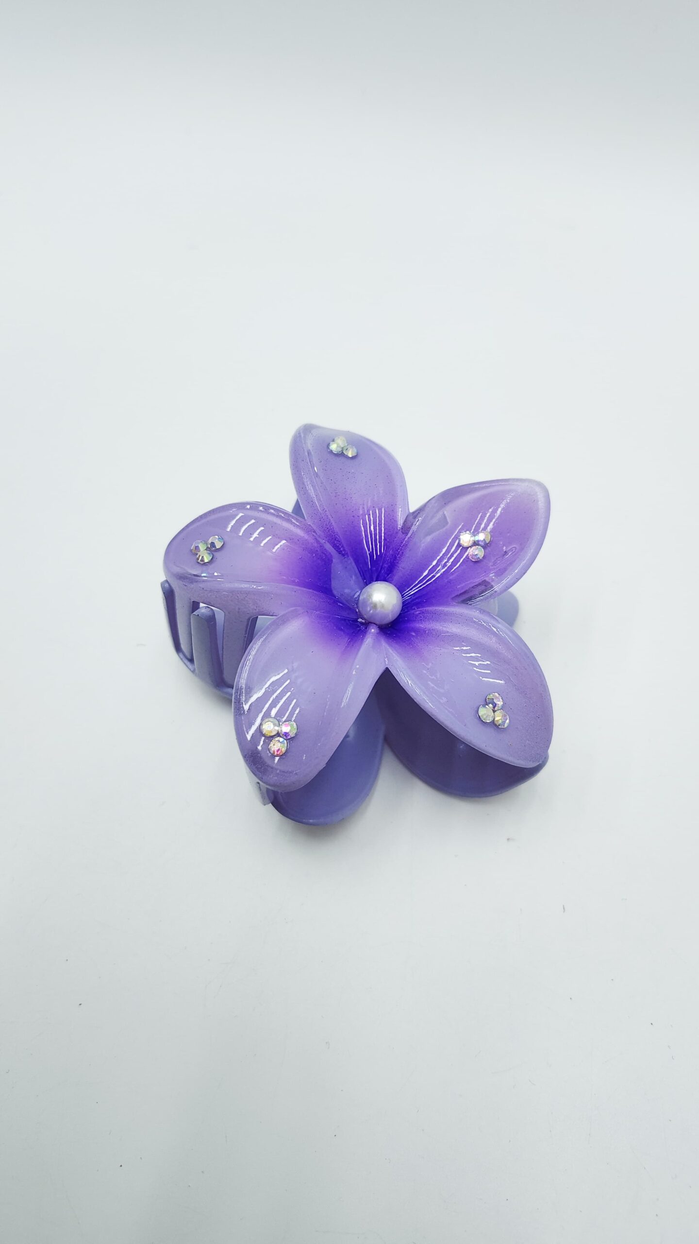 Крабик Гавайский цветок 8см арт.tr520 со стразами и жемчугом фиолетовый