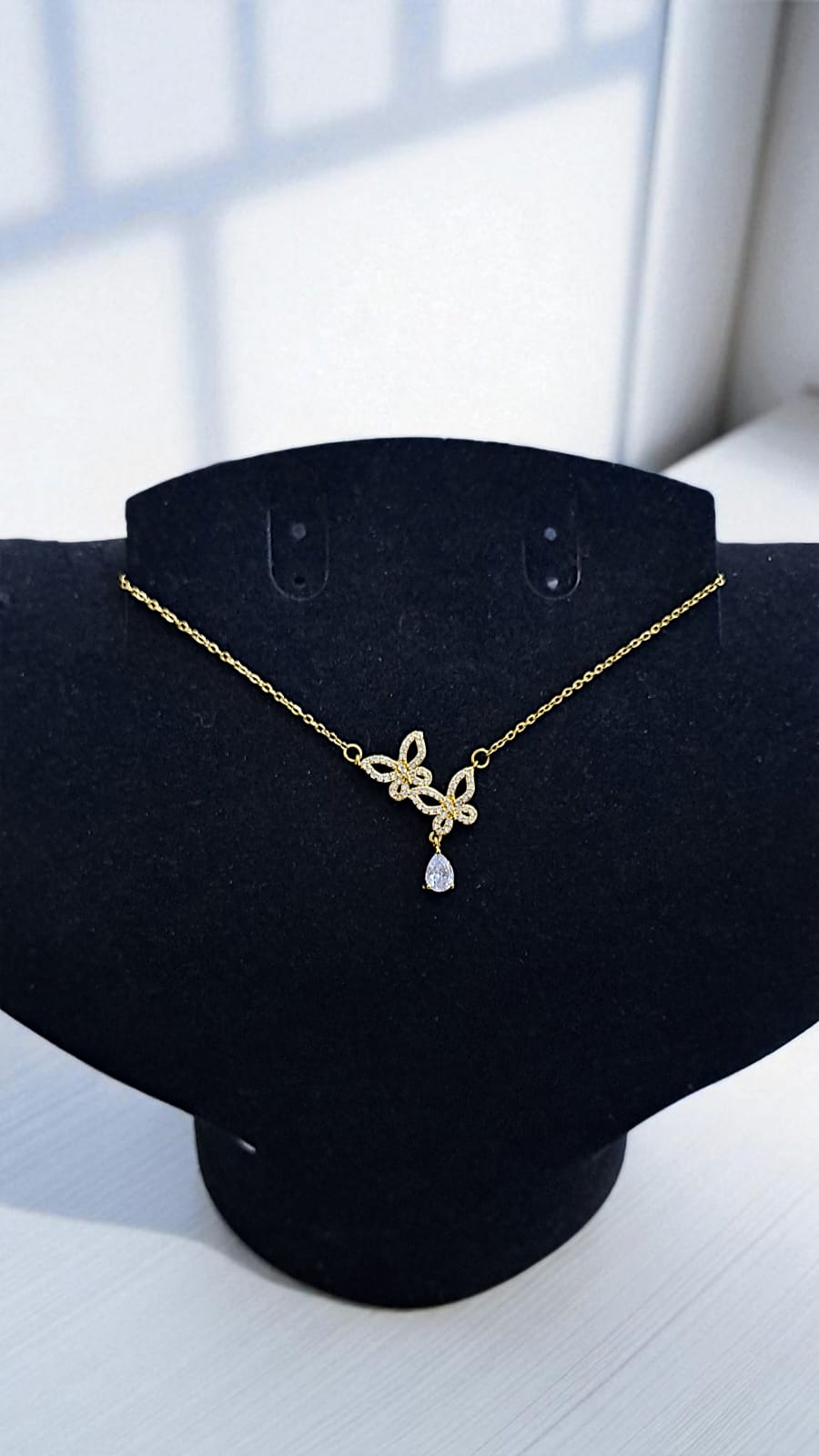 Кулон на цепочке в виде бабочки имеет универсальный дизайн.