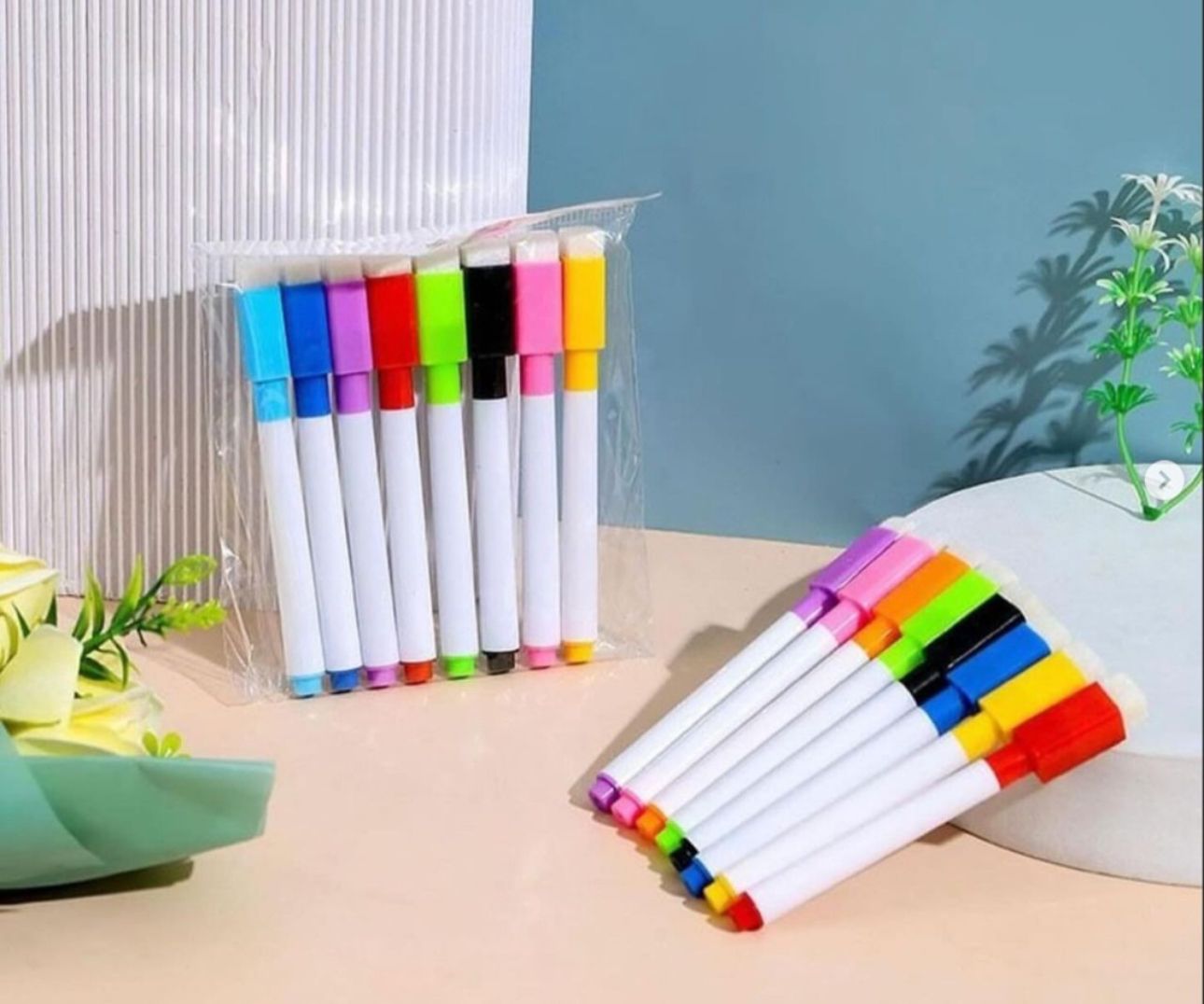 Каждый маркер оснащен губкой на колпачке для удобства стирания.