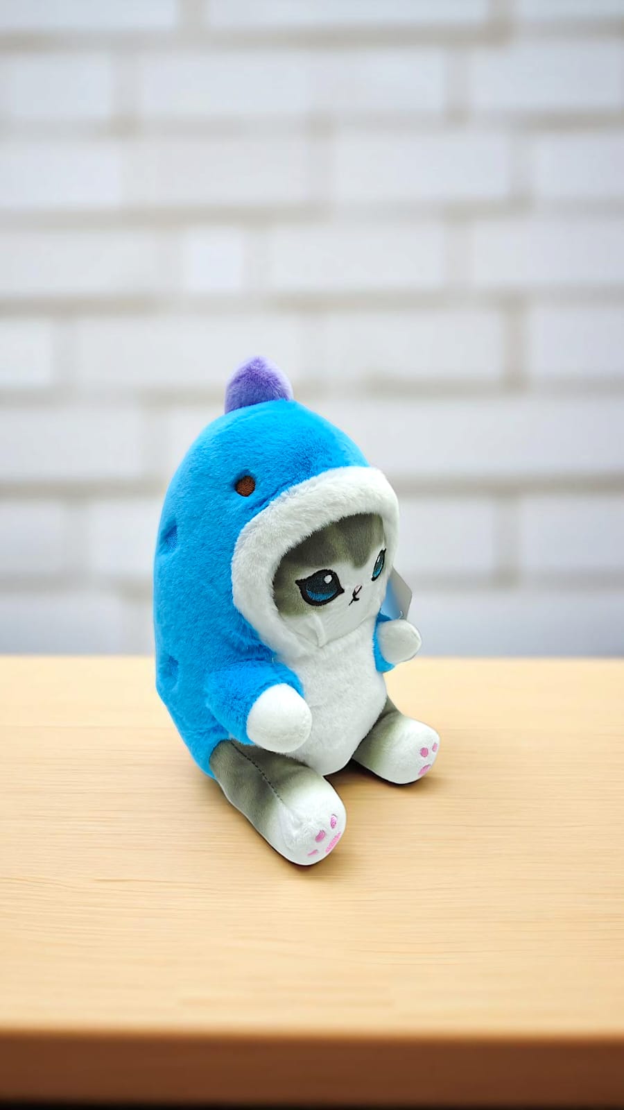 Очаровательный серый котик в ярком голубом костюме динозаврика — идеальный спутник для игр, обнимашек и уютных вечеров! Его большие блестящие глазки, милые ушки и лапки с розовыми подушечками не оставят равнодушными ни детей, ни взрослых. Мягкий, плюшевый материал приятен на ощупь, а аккуратная строчка и устойчивый силуэт делают игрушку качественной и долговечной.