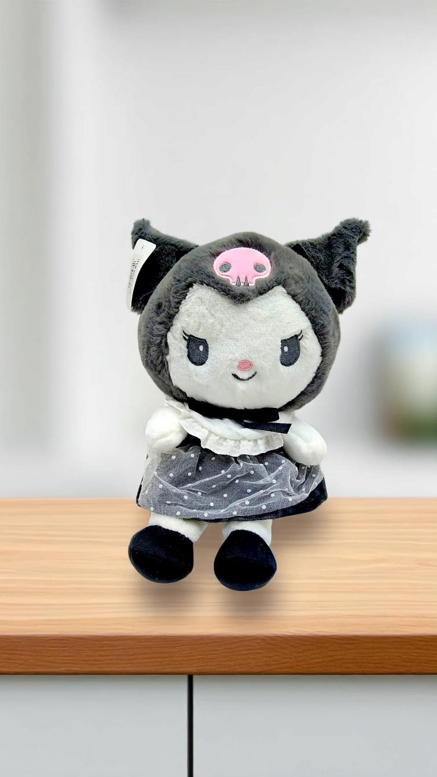 Очаровательная Куроми в стильном образе — теперь не только озорная хулиганка, но и настоящая модница! Она одета в милое чёрно-белое платье с фатиновой юбочкой в горошек, а её фирменный капюшон с розовой черепушкой и ушками делает образ завершённым. Игрушка выполнена из мягкого плюша, идеально подходит для объятий и станет ярким акцентом в любой коллекции или детской комнате.