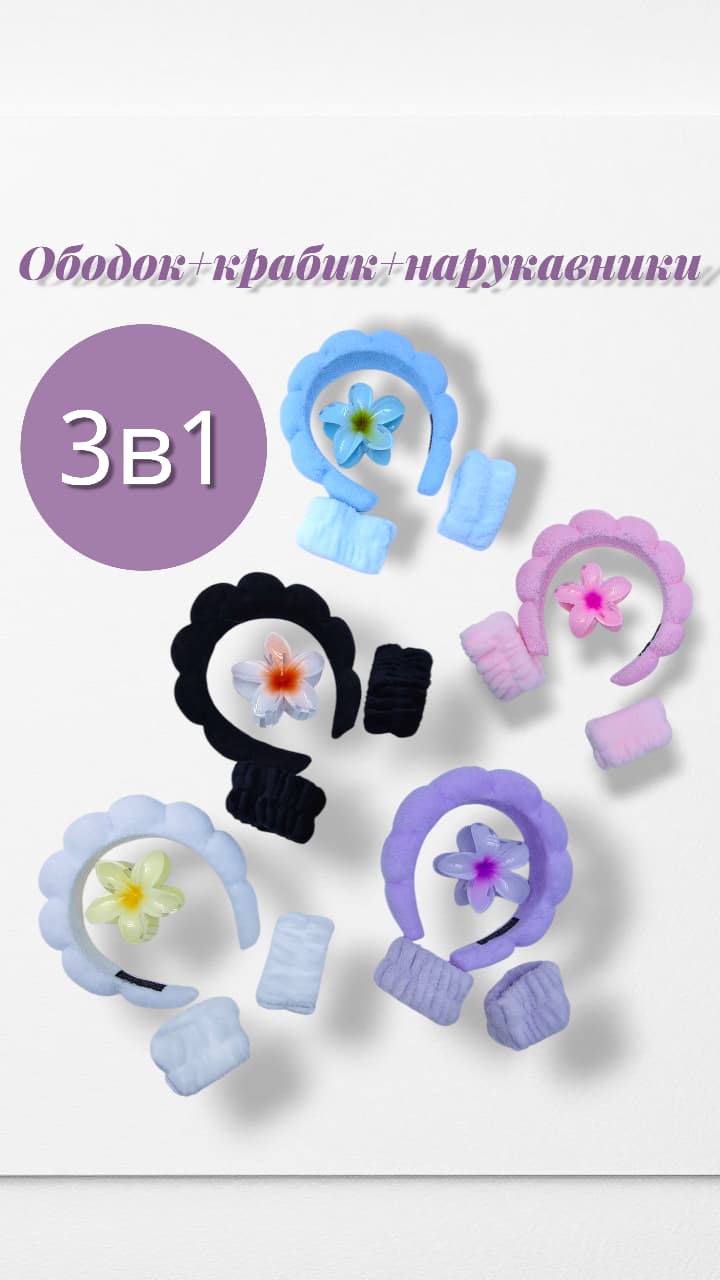 Набор для умывания 3в1 ободок+нарукавники+крабик арт.102036-1 ассорти
