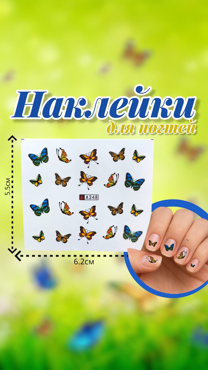 Наклейки для ногтей арт.a348 бабочки