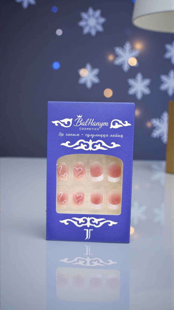 Ногти накладные Balhanym арт.tr2784 нюдовый френч с сердцами