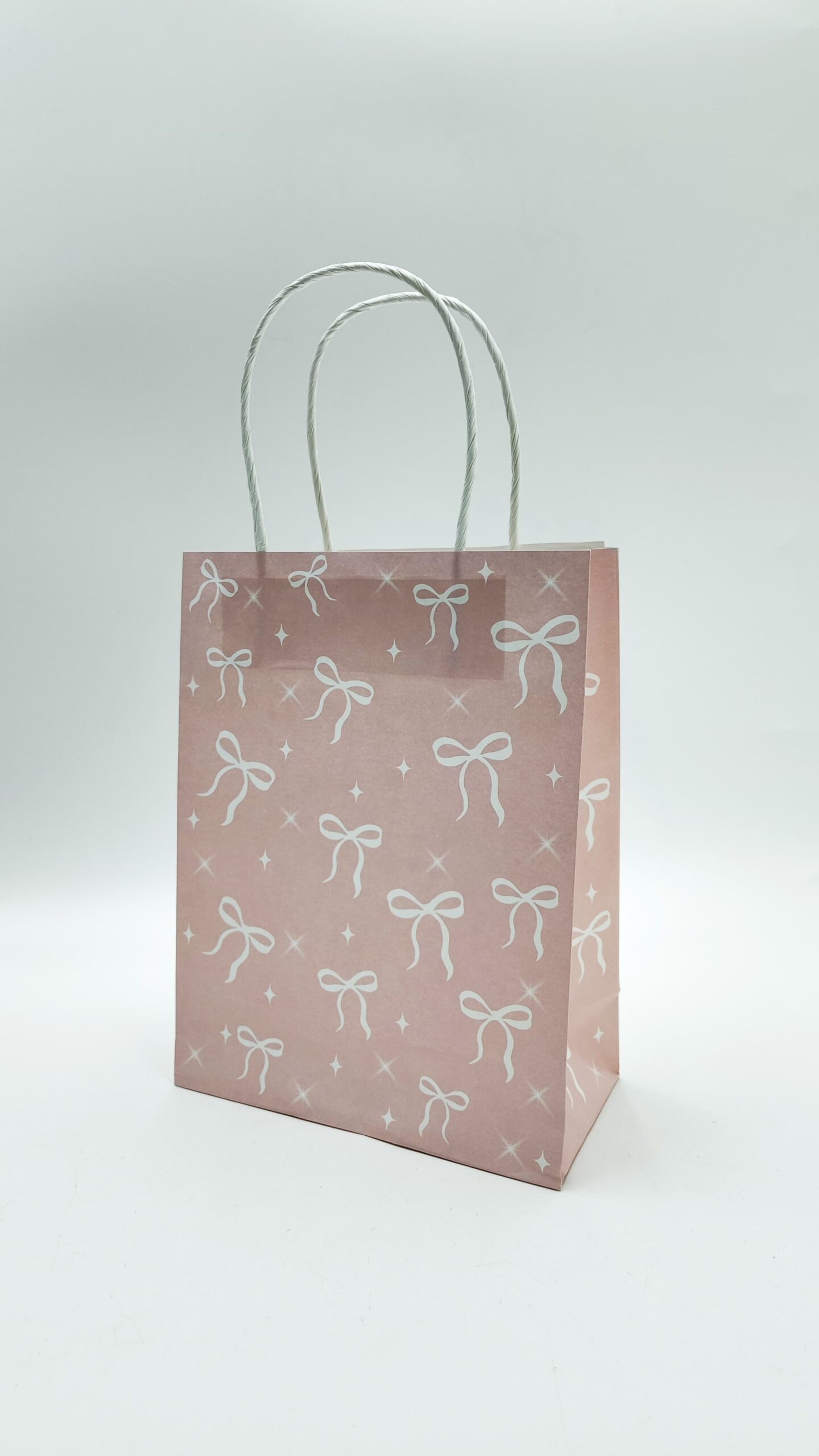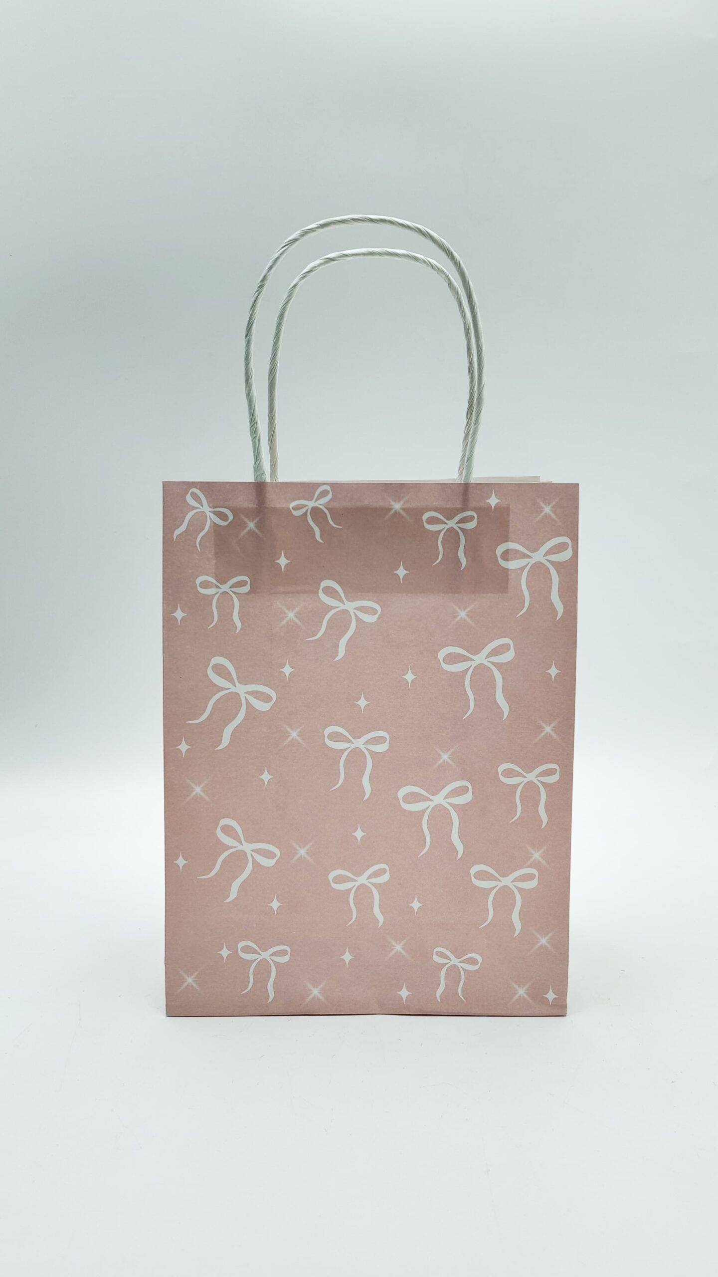 Пакет подарочный крафт розовый с белыми бантиками 21*16*8см арт.tr264