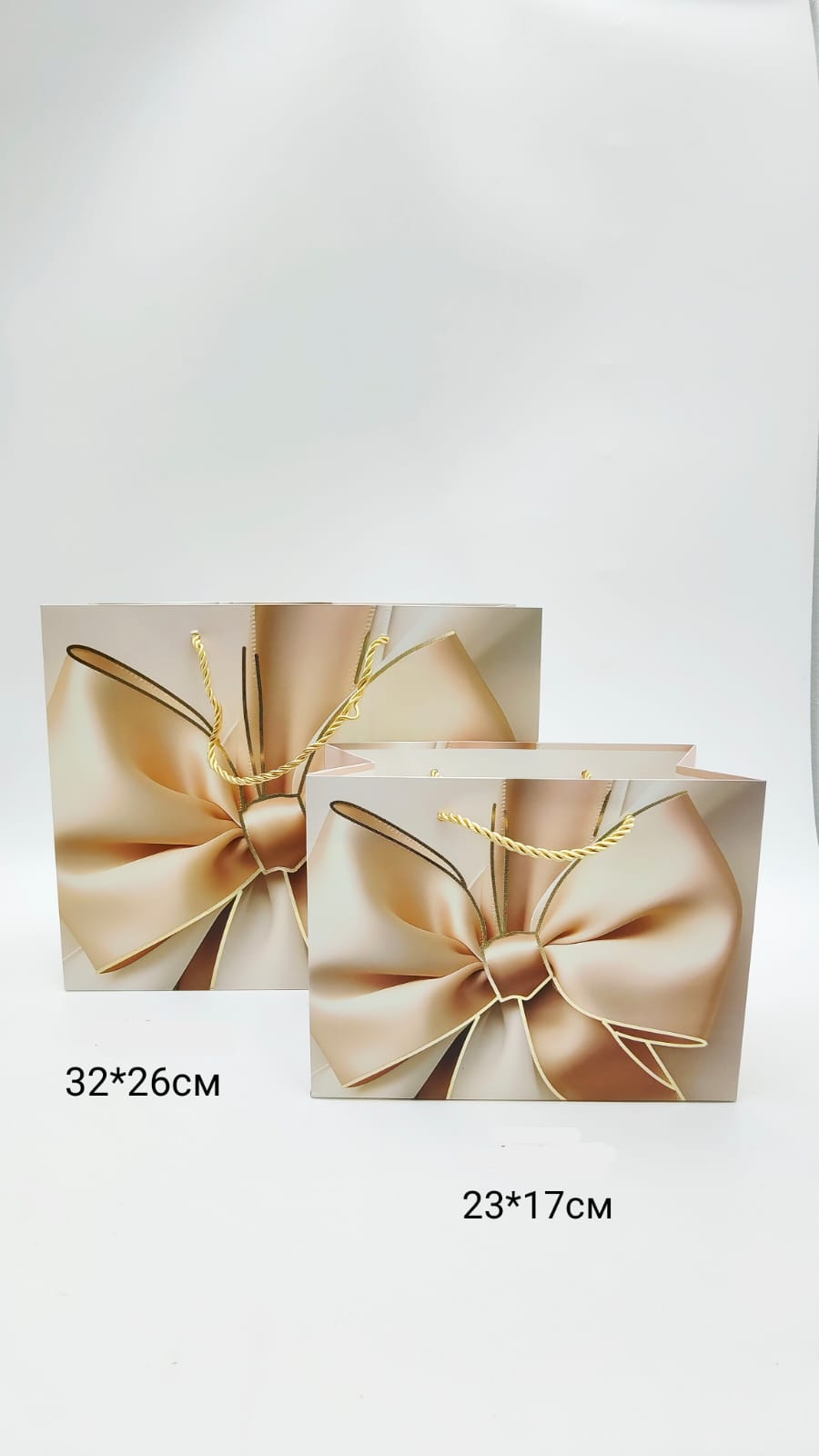 Пакет подарочный 23*17см Бант арт.qzgzd-583c-3 бежевый