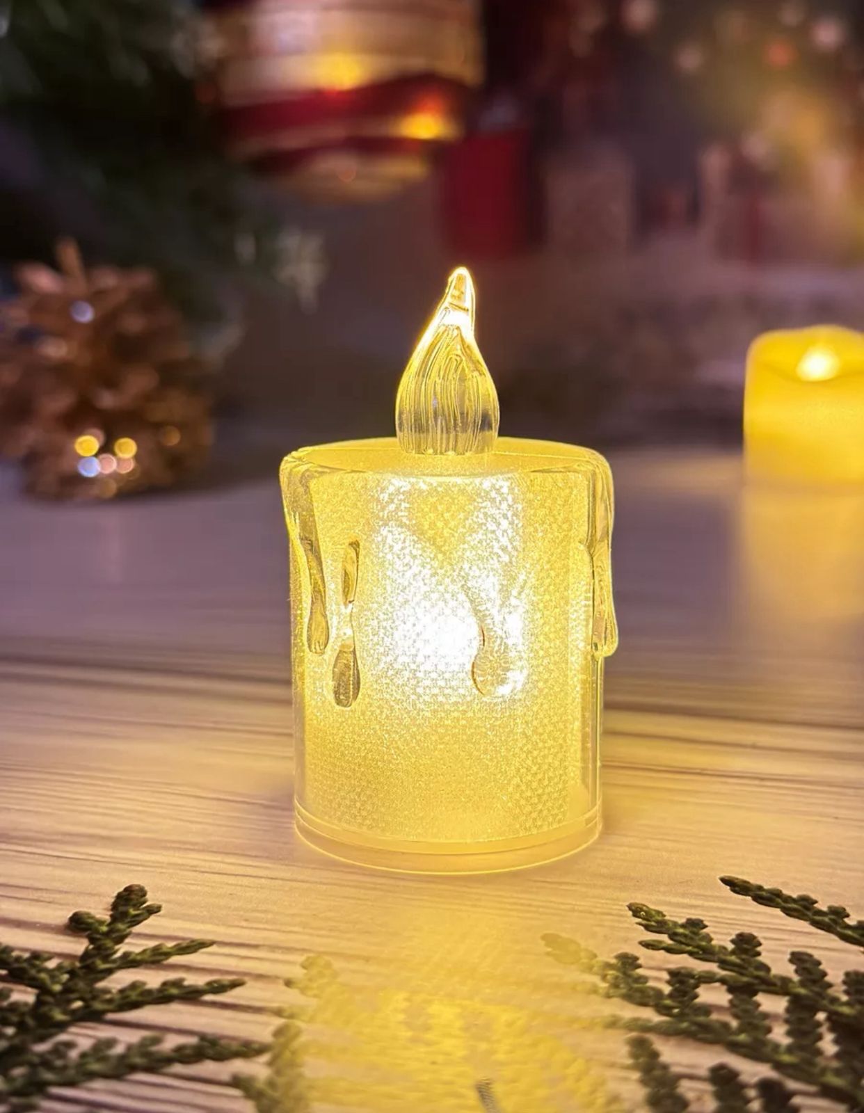 Это светодиодная свеча. Она имитирует внешний вид и мерцание настоящей свечи, но работает от батареек и использует светодиодную лампочку.