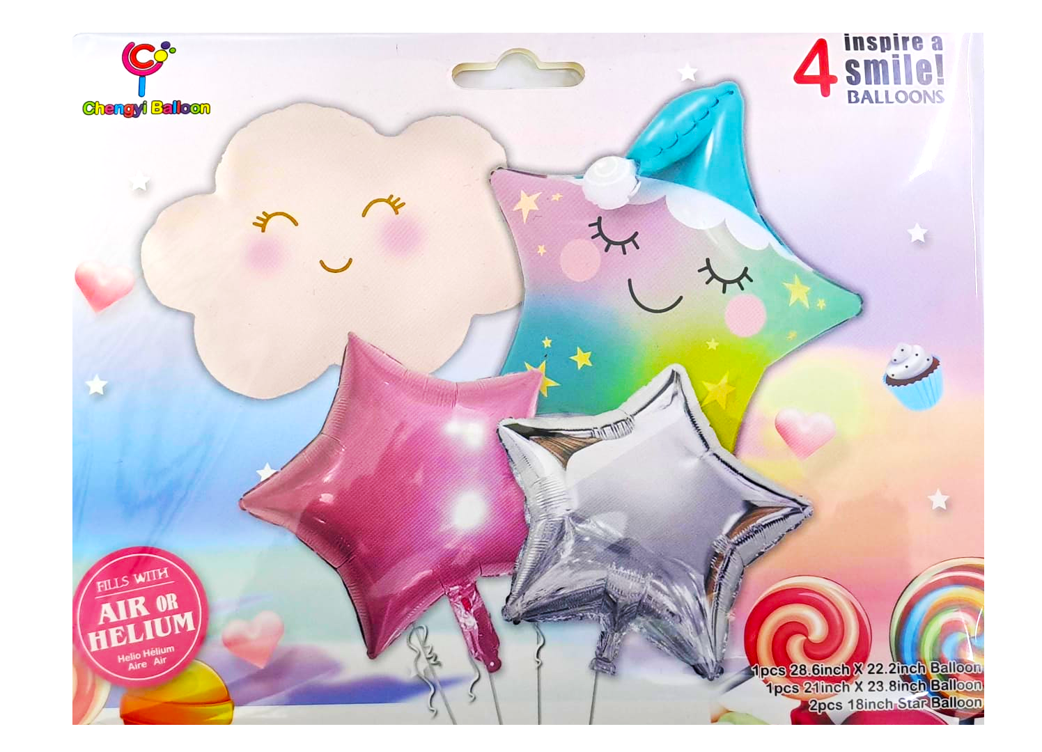 Шары фольга набор Звезды с облаком уп 5шт арт.zcs1339-2321