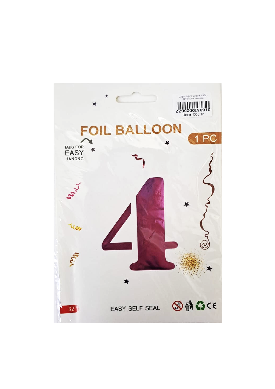 Шар фольга цифра 4 32д арт.tr1275 серебро
