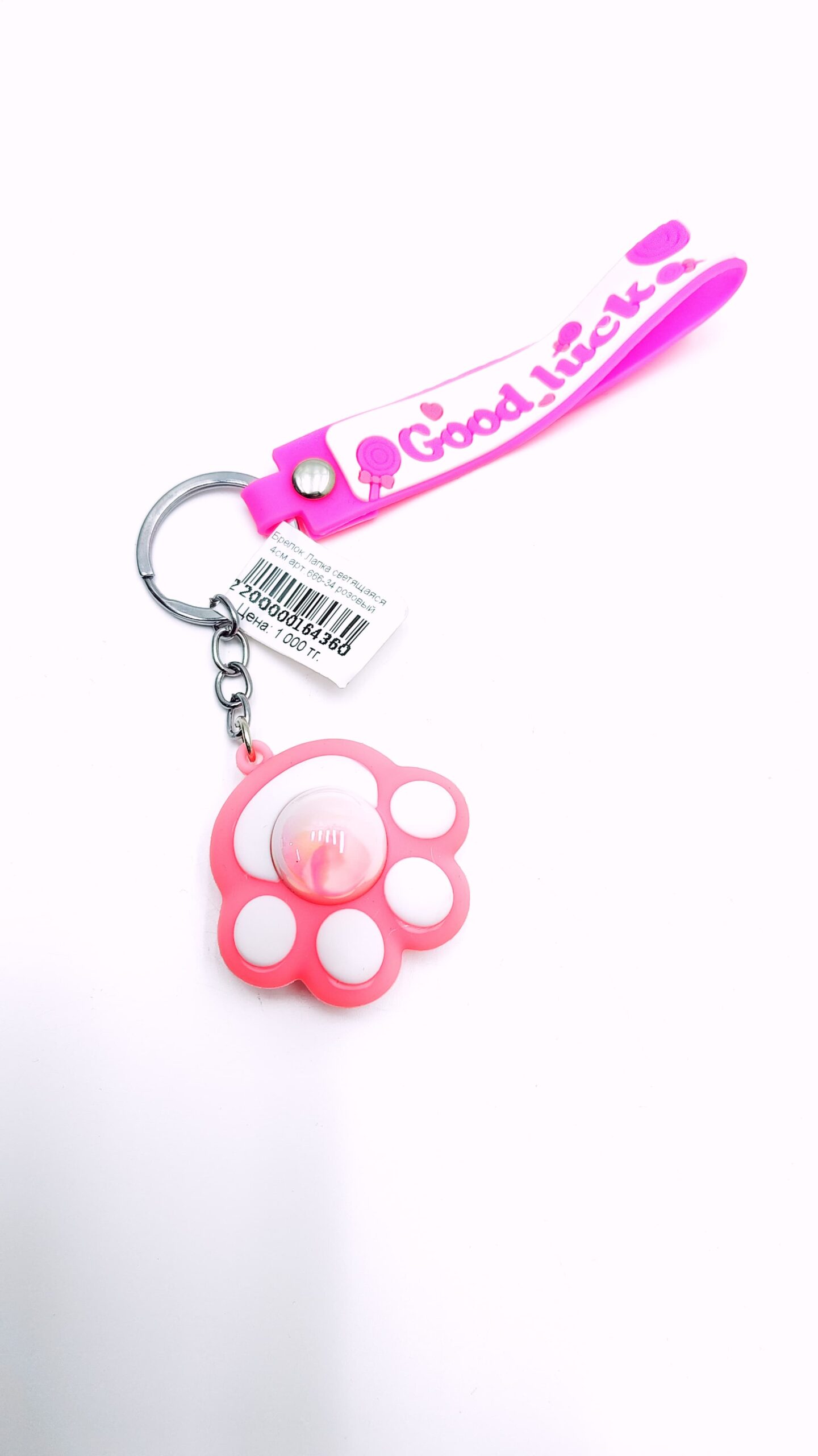 Брелок Лапка светящаяся 4см арт.666-34 розовый