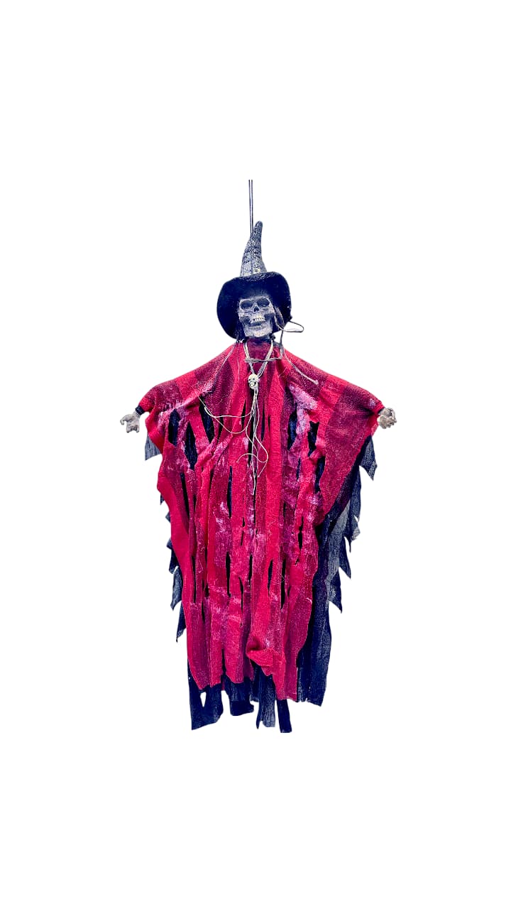 Подвесная кукла «Ведьма» в высоту 75 см — идеальное украшение для Хэллоуина или тематической вечеринки. Изготовленная из полиэстера и ПВХ, она привлекает внимание своей атмосферной внешностью.