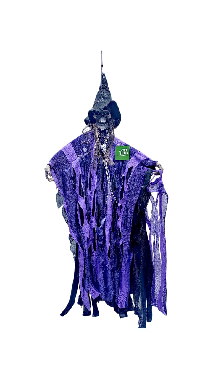 Подвесная кукла «Ведьма» в высоту 75 см — идеальное украшение для Хэллоуина или тематической вечеринки. Изготовленная из полиэстера и ПВХ, она привлекает внимание своей атмосферной внешностью.