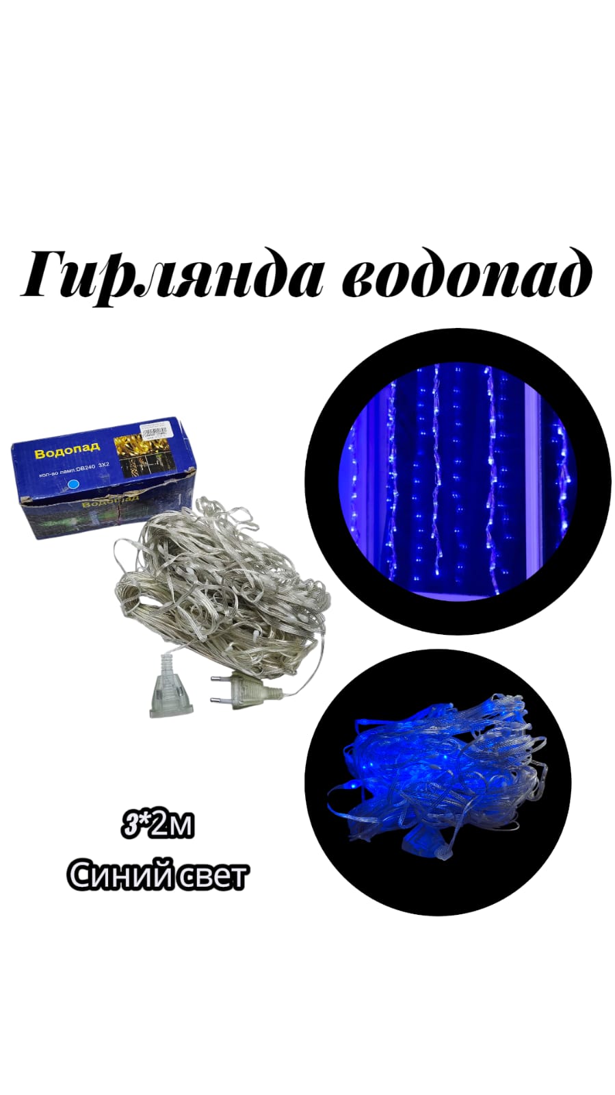 гирлянда водопад 3на2 метра синий свет 8000тг