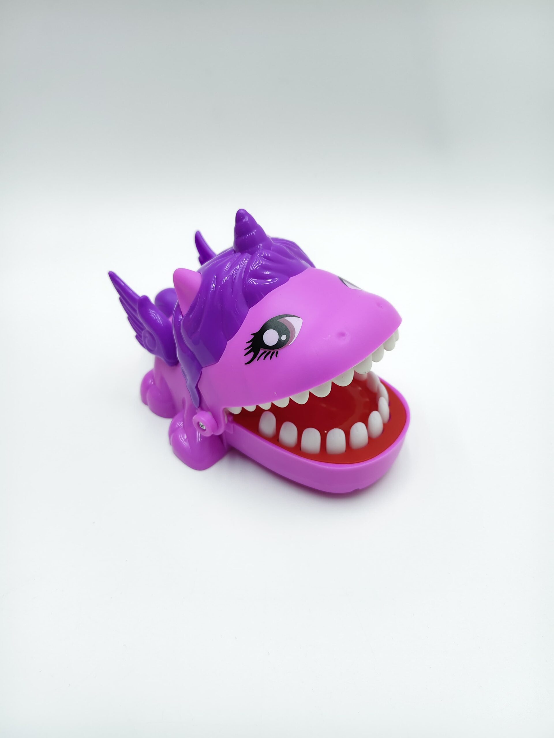 Для начала игры, нужно поднять верхнюю челюсть , затем нажимать, по очереди, на зубы. Проигрывает тот, кто нажмёт на больной зуб. При нажатиина больной зуб, челюсть захлапывается. В начале новой игры больной зуб переходит на другое место. Материал: пластик. Соответствует требованиям безопасности продукции. Для детей от 3-х лет.