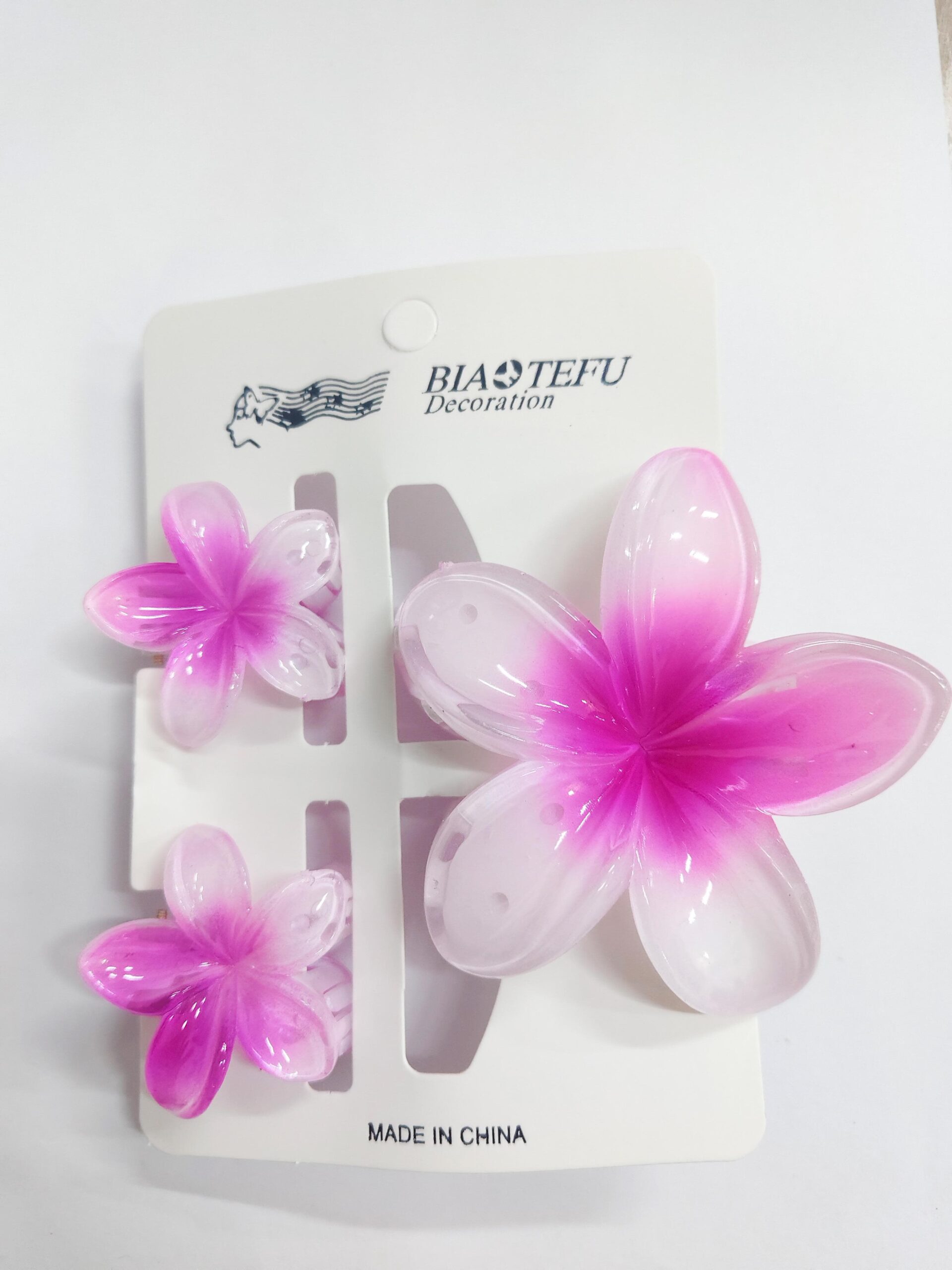 Трендовые крабики для волос. набор из 3штук. Диаметр двух маленьких цветочков 4см. диаметр 1 большого цветка 8см Гавайские цветочки розово-белого цвета. Очень удобные заколочки для создания причесок.
