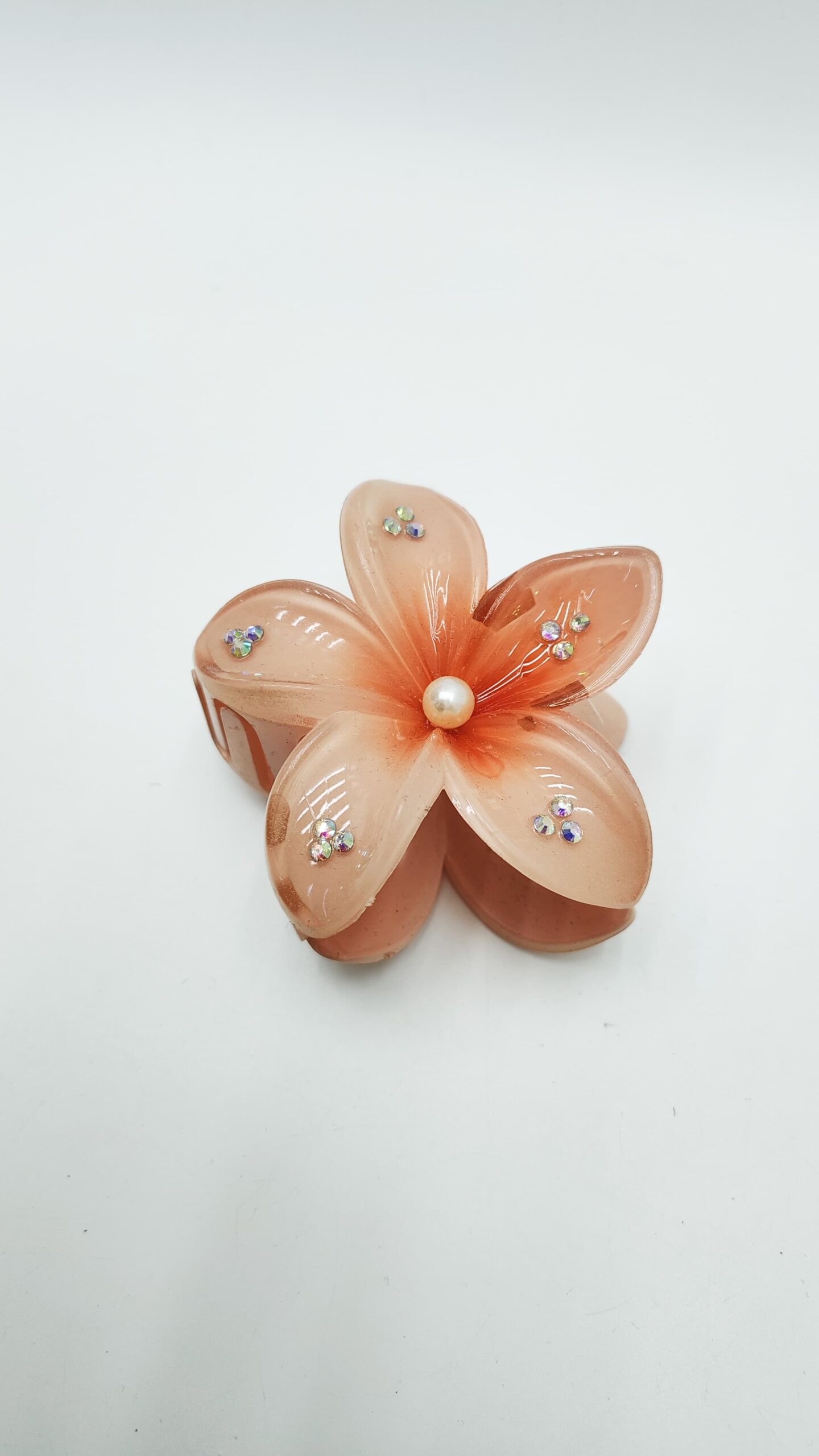 Крабик Гавайский цветок 8см арт.tr523 со стразами и жемчугом персиковый