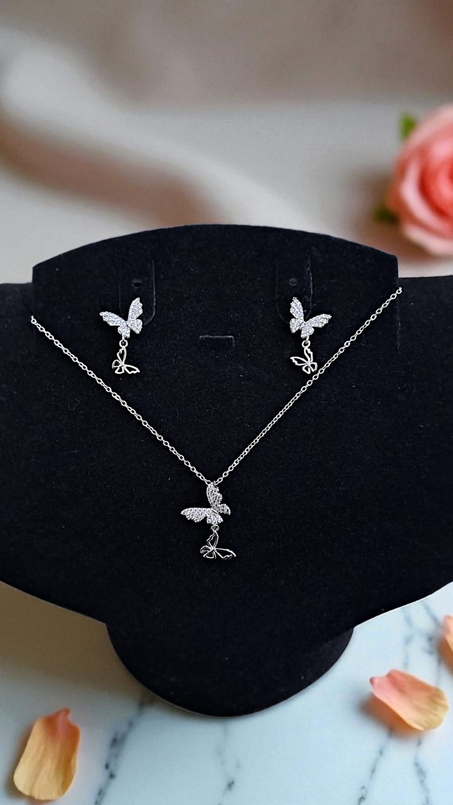 Набор титан 2в1 цепочка+серьги бабочки со стразами арт.tr2069 серебро