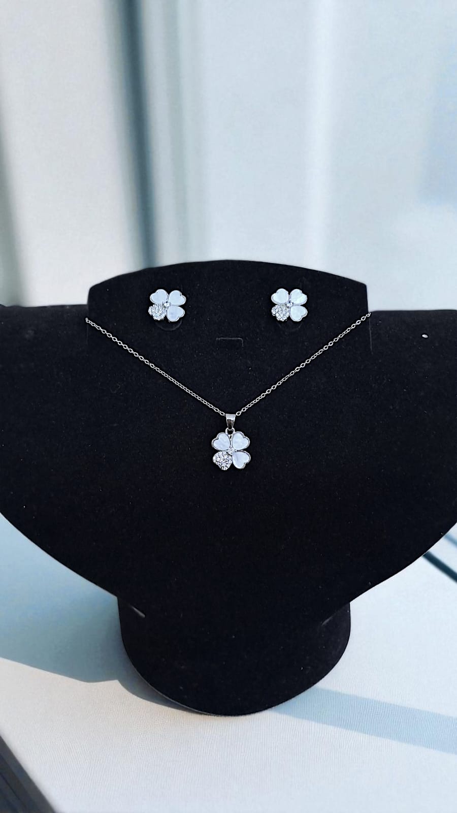 Комплект включает в себя серьги и стильную цепочку с подвеской.