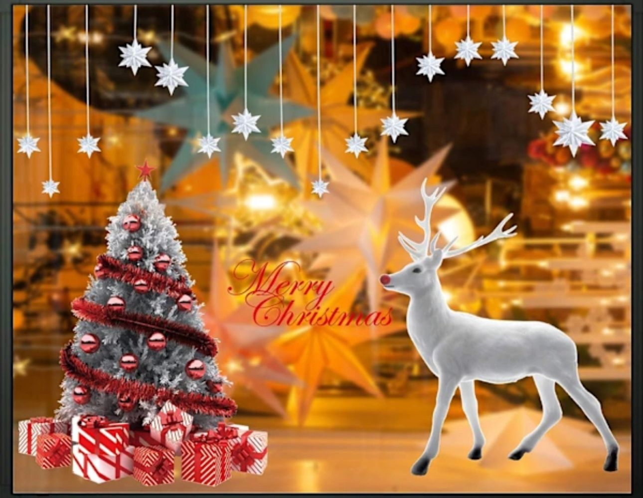 Наклейки на стекло новогодние Ёлка с оленем арт.XC502480