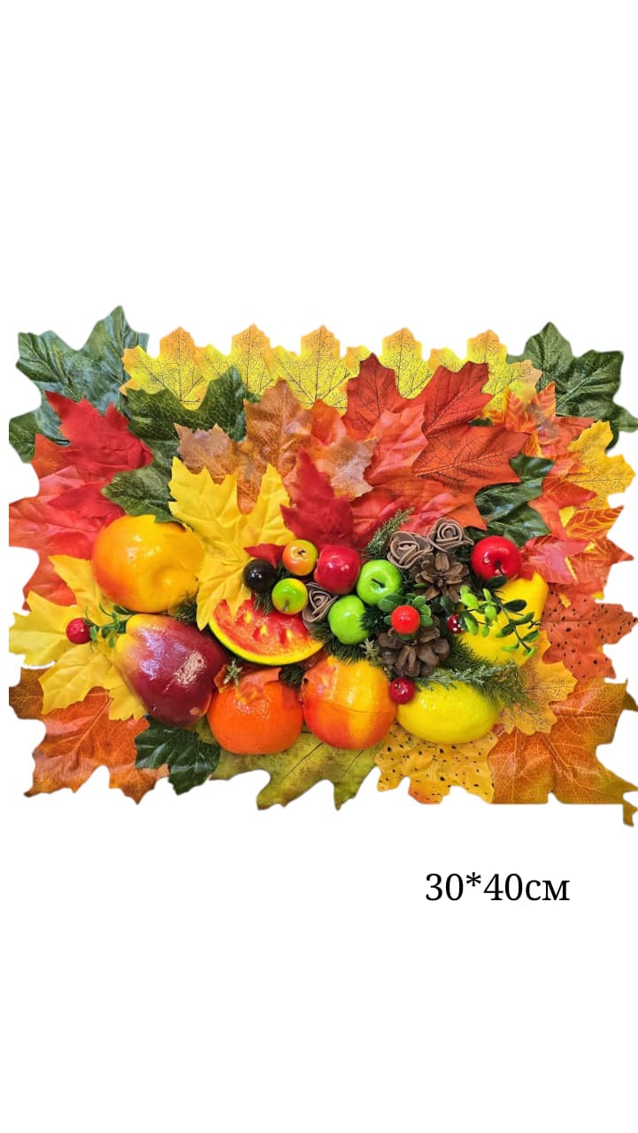 Панно осеннее выполнено в ярких и теплых тонах,символизирующих богатство урожая .В композиции использованы фрукты и овощи ,которые сочетаются с осенними листьями,создавая ощущение осеннего изобилия и уюта.РАбота отражает красоту природы и щедрость осенней поры.