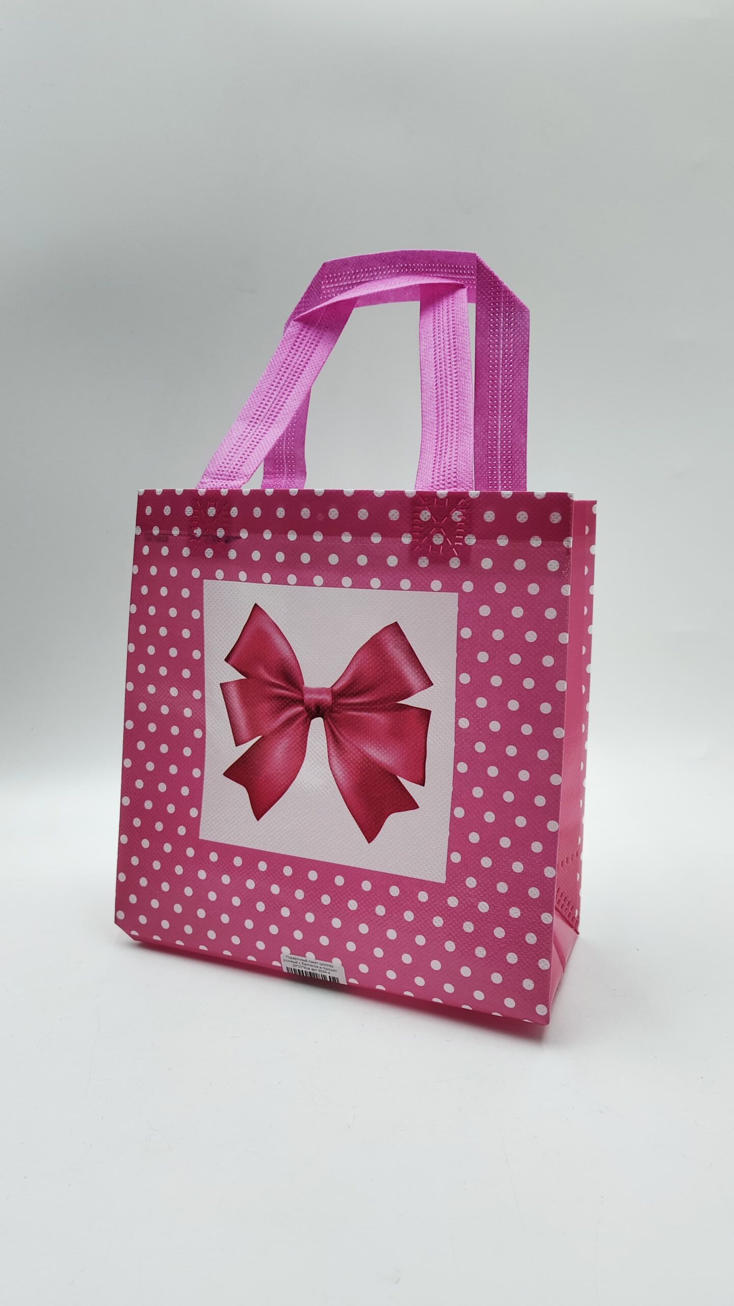 Подарочный пакет-шоппер розовый с бантиком в горошек 20*22*9см арт.9034-4