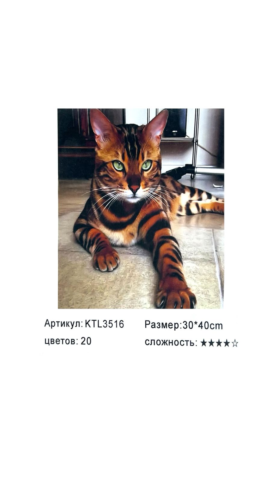 Рисование по номерам 30*40см арт.ktl3516 Бенгальская кошка