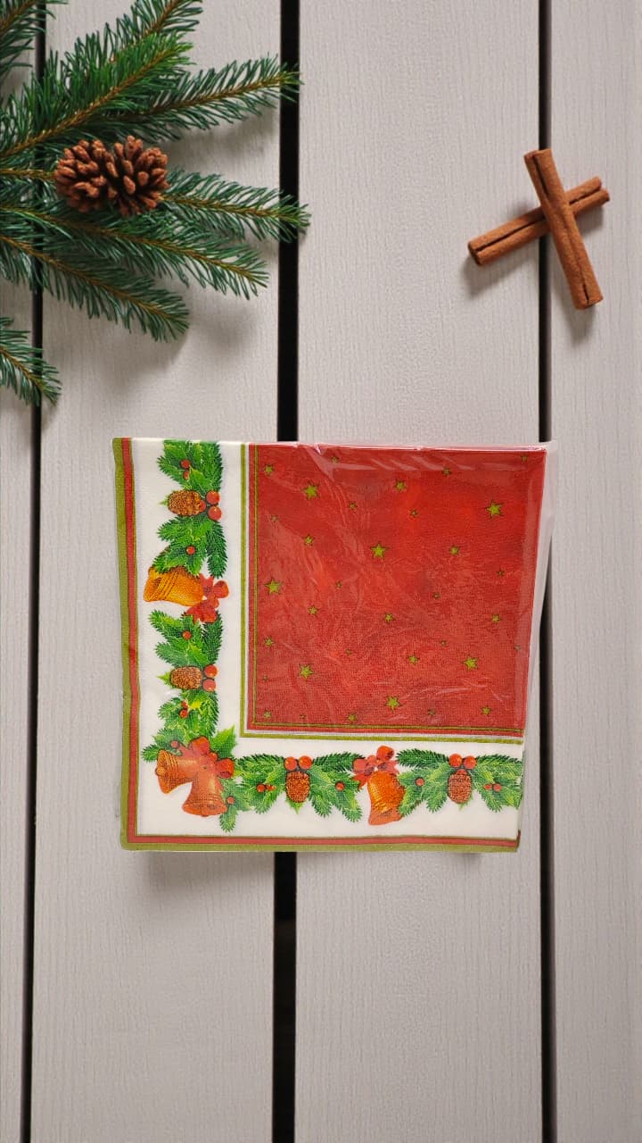 Салфетки новогодние 16,5*16,5см уп 20шт красные с хвоей