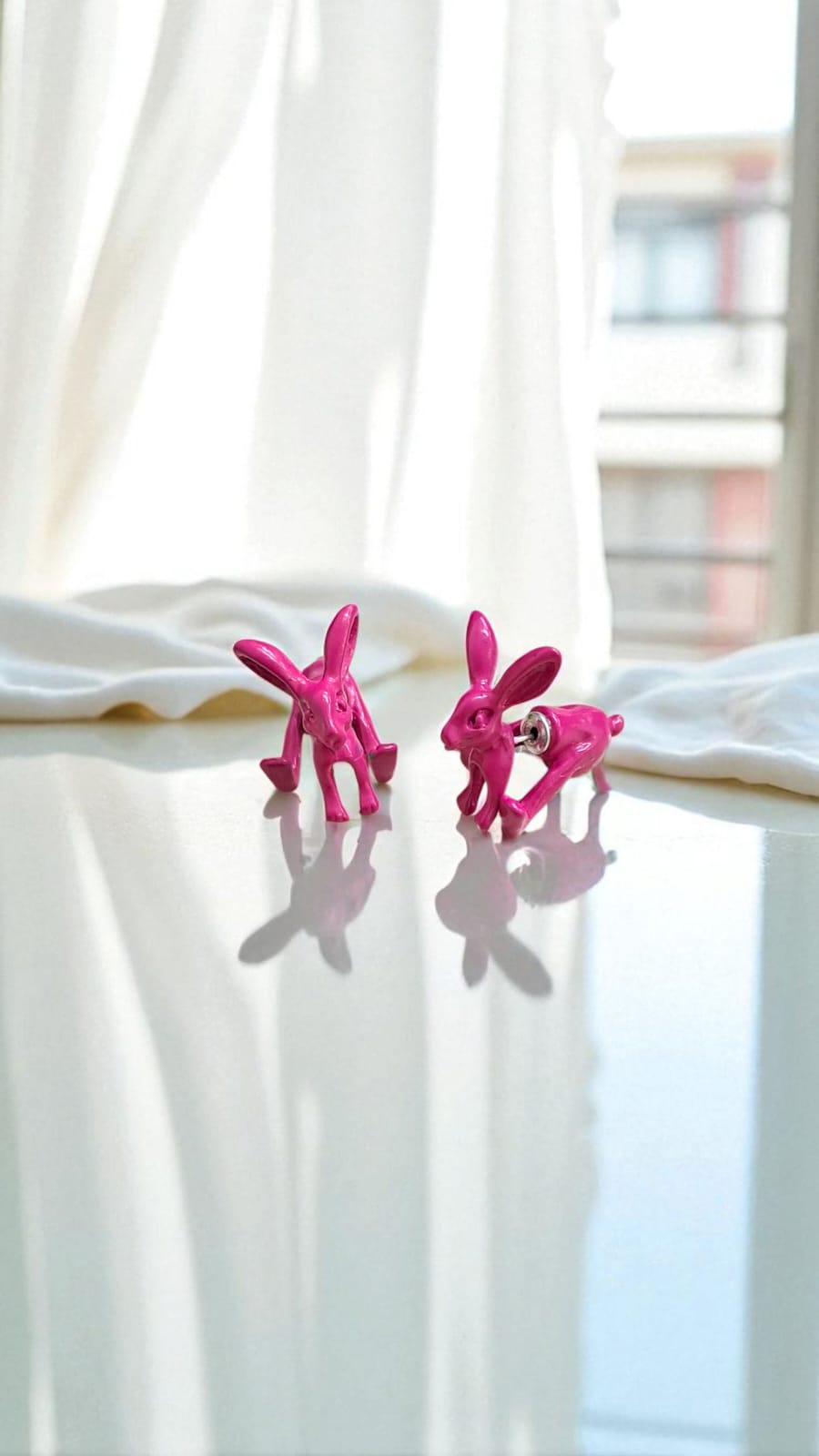 Серьги зайцы, цвет фуксия в серебре — это изысканное украшение, которое добавит женственности и нежности в ваш образ.