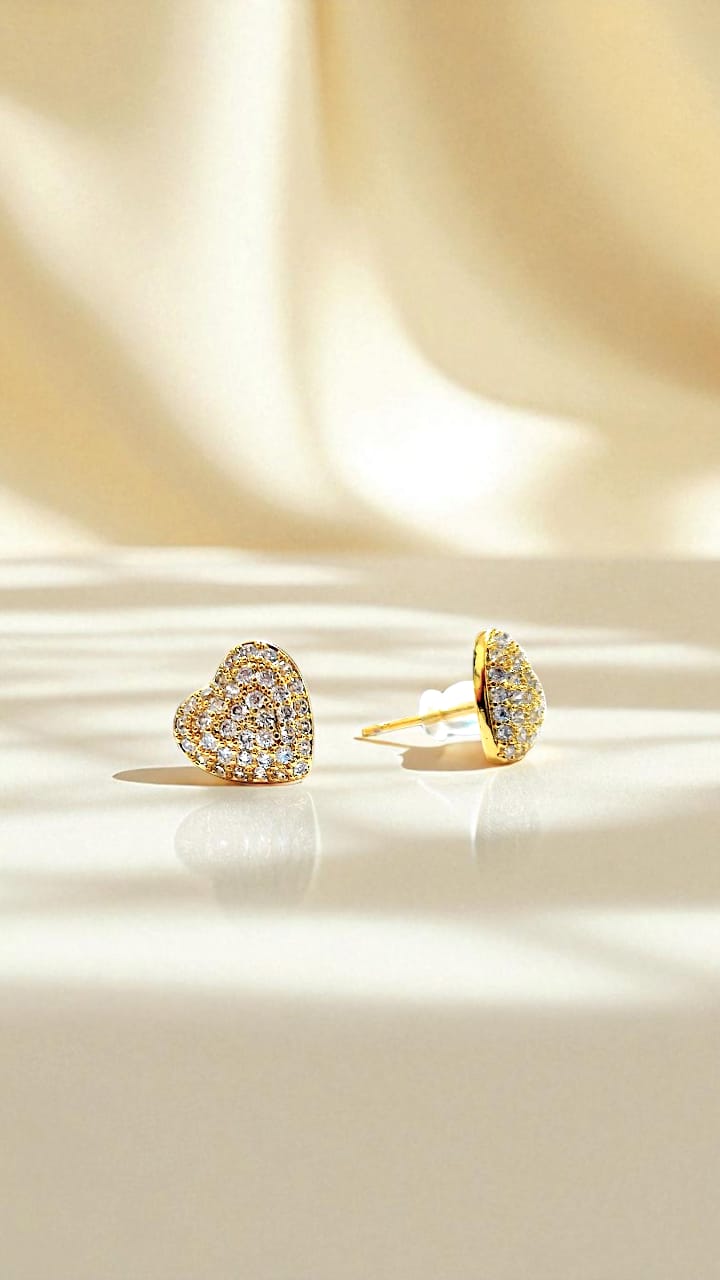 Серьги Сердце титан со стразами 1см арт.tr1762 золото