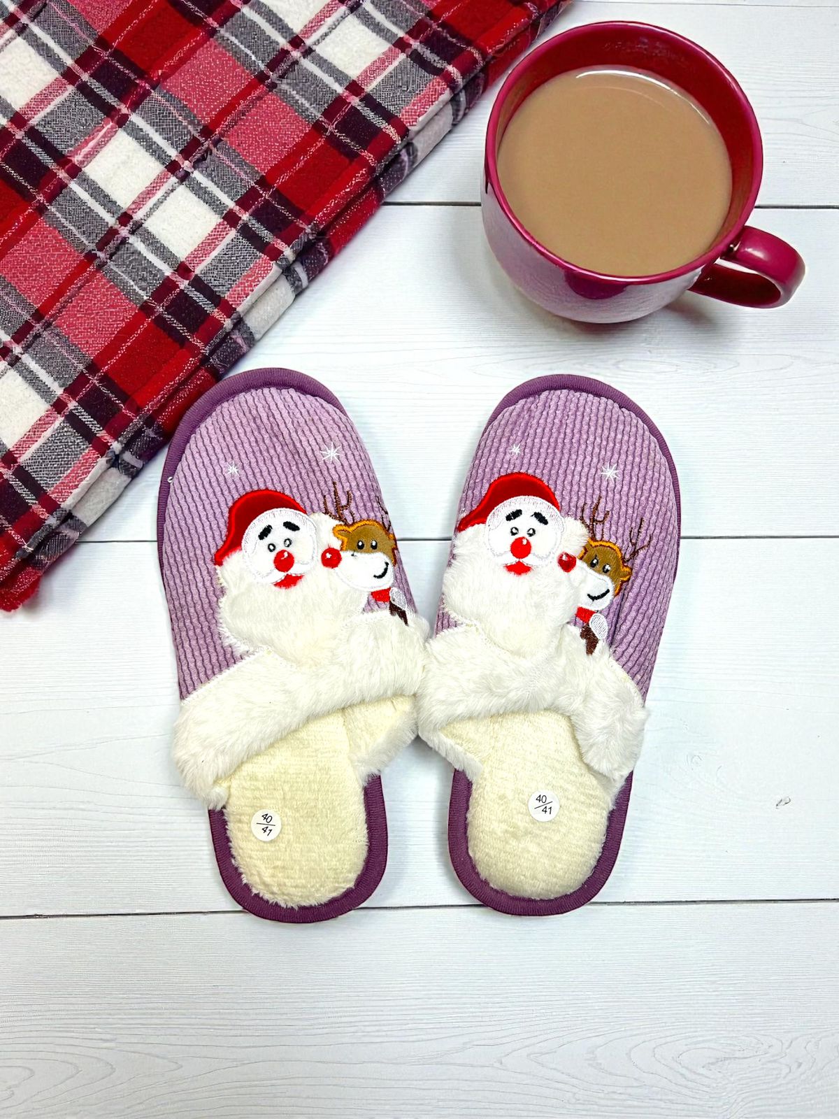 Тапочки домашние Дед мороз с оленем 40-41р арт.tr3210 сиреневые