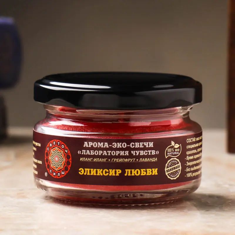 поможет, если не хватает любви и ласки. Характеристики Высота 5 см, диаметр 7 см. Время горения: более 14 часов Вес свечи: 180 гр. Вес воска в изделии: 80 гр.